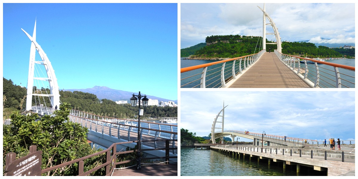 是濟州南部最新興的健行景點之一,全新打造的鳥島跨海大橋在夜間透過燈光的照射更顯美侖美奐。不過對當地人來說,最重要的還是經由跨海大橋連結到鳥島的健行步道~Olee偶來小徑,沿著道路可欣賞遠眺海洋以及鳥島周圍碼頭的景色,當地不少學校也帶小朋友到此戶外教學。