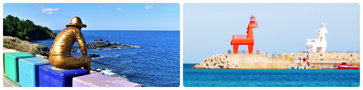 韓劇《大長今》拍攝地,第30-31集長今一人站在絕壁上,決心習醫的感人場面。位於濟州島最南端,又稱將軍石或望夫石,是150萬年前的火山爆發時期的大量火山溶岩形成的自然景觀,斷崖絕壁、奇  巖山嶼千奇百態。而在高麗末期崔宋將軍在西歸浦虎島討伐元國殘兵,把將軍石扮成壯大將軍,在虎島的士兵都嚇壞了。