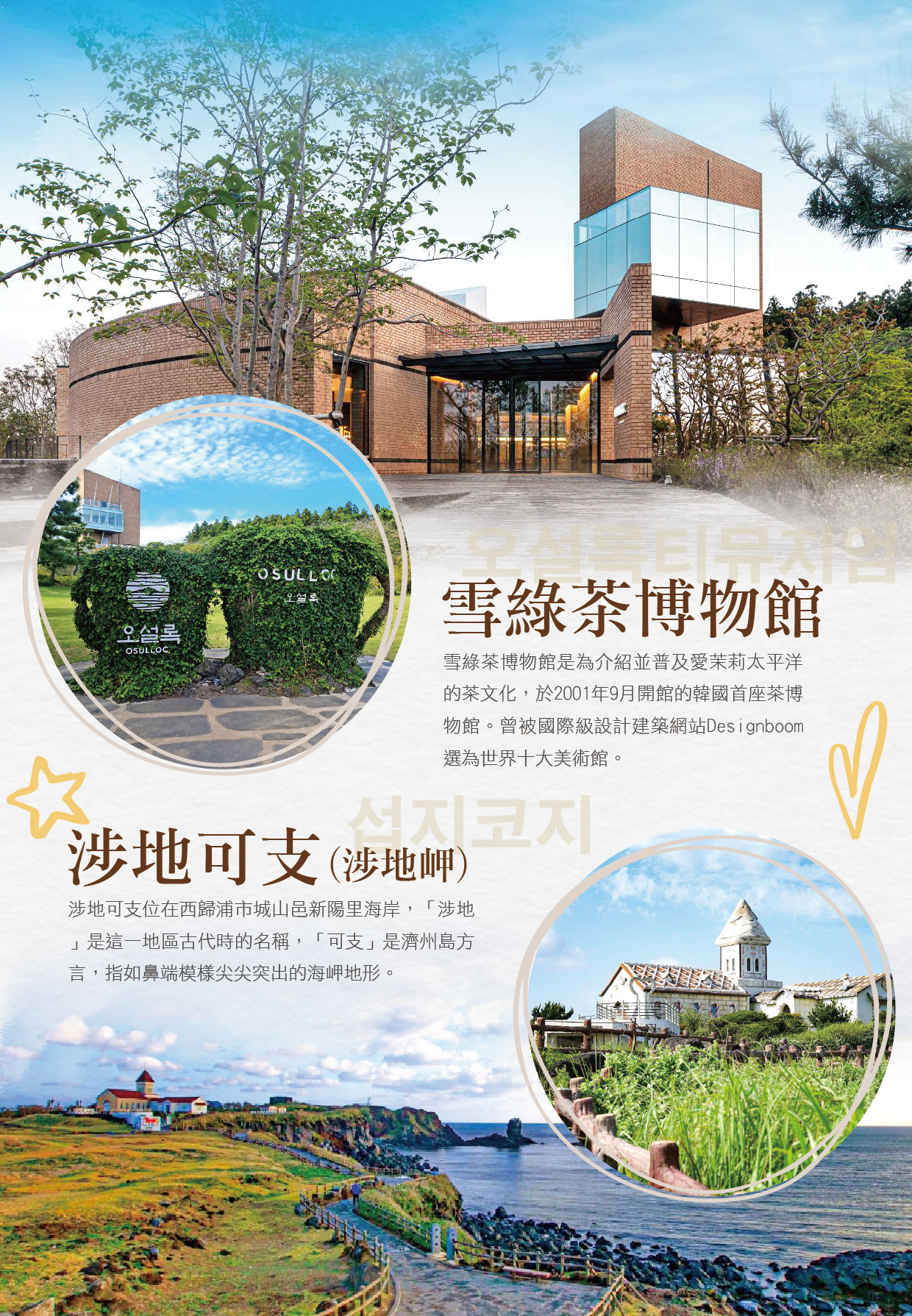 城山日出峰(UNESCO世界自然遺產)-涉地可支(涉地岬)-松堂童話村+星巴克咖啡館(不含飲料)-思連伊林蔭道-東門傳統市場(美食大探索)